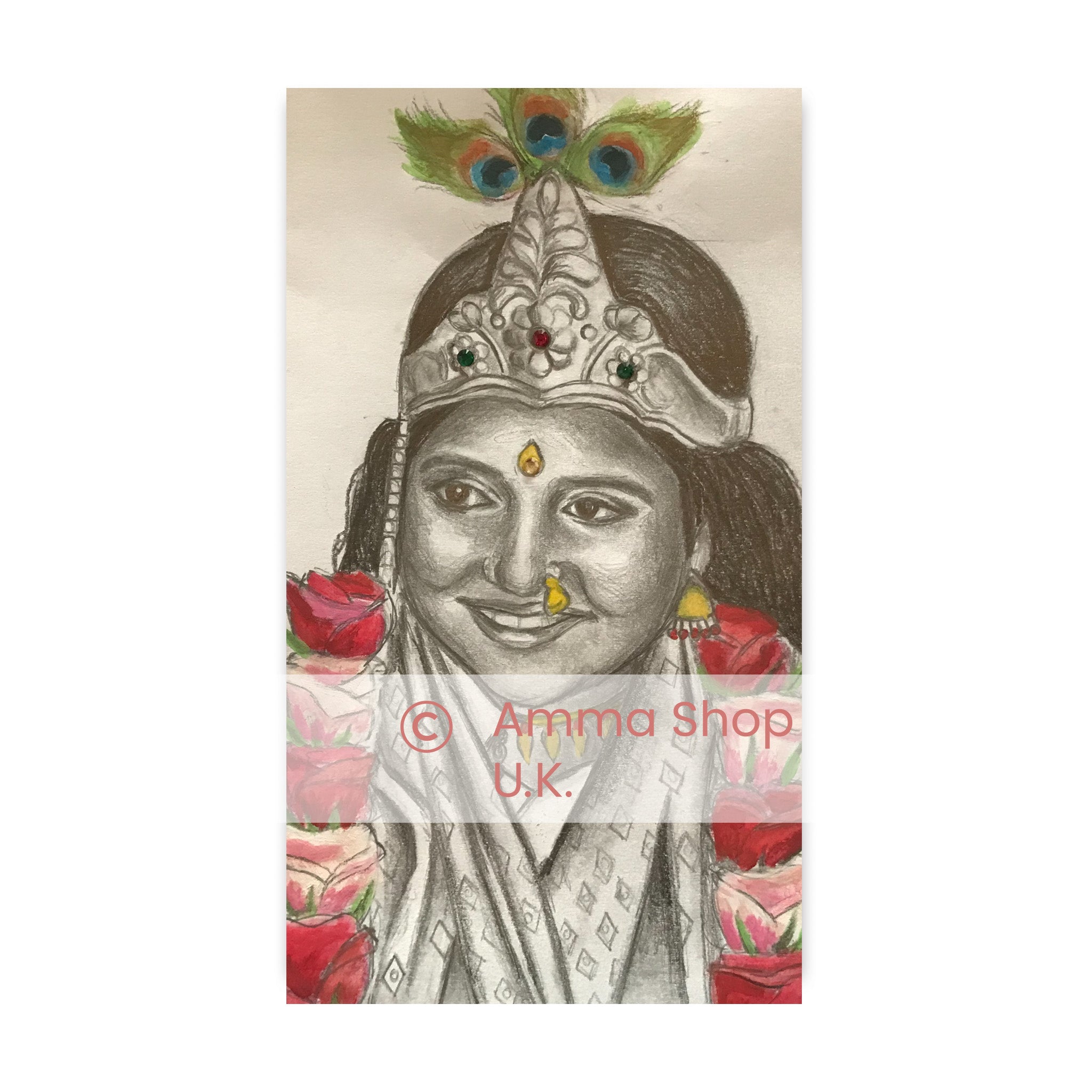 Parvati, an Amma devotee, is currently pursuing her medical degree. In her part time she likes to sketch various personalities. She has gracefully agreed to share 'AMMA, My Krishna' with the Amma community to raise funds. Our dearest AMMA has seen and blessed this beautiful sketch.