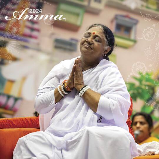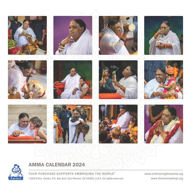 Greet every day in 2024 with a 12x12 monthly calendar filled with stunning photographs of Amma.