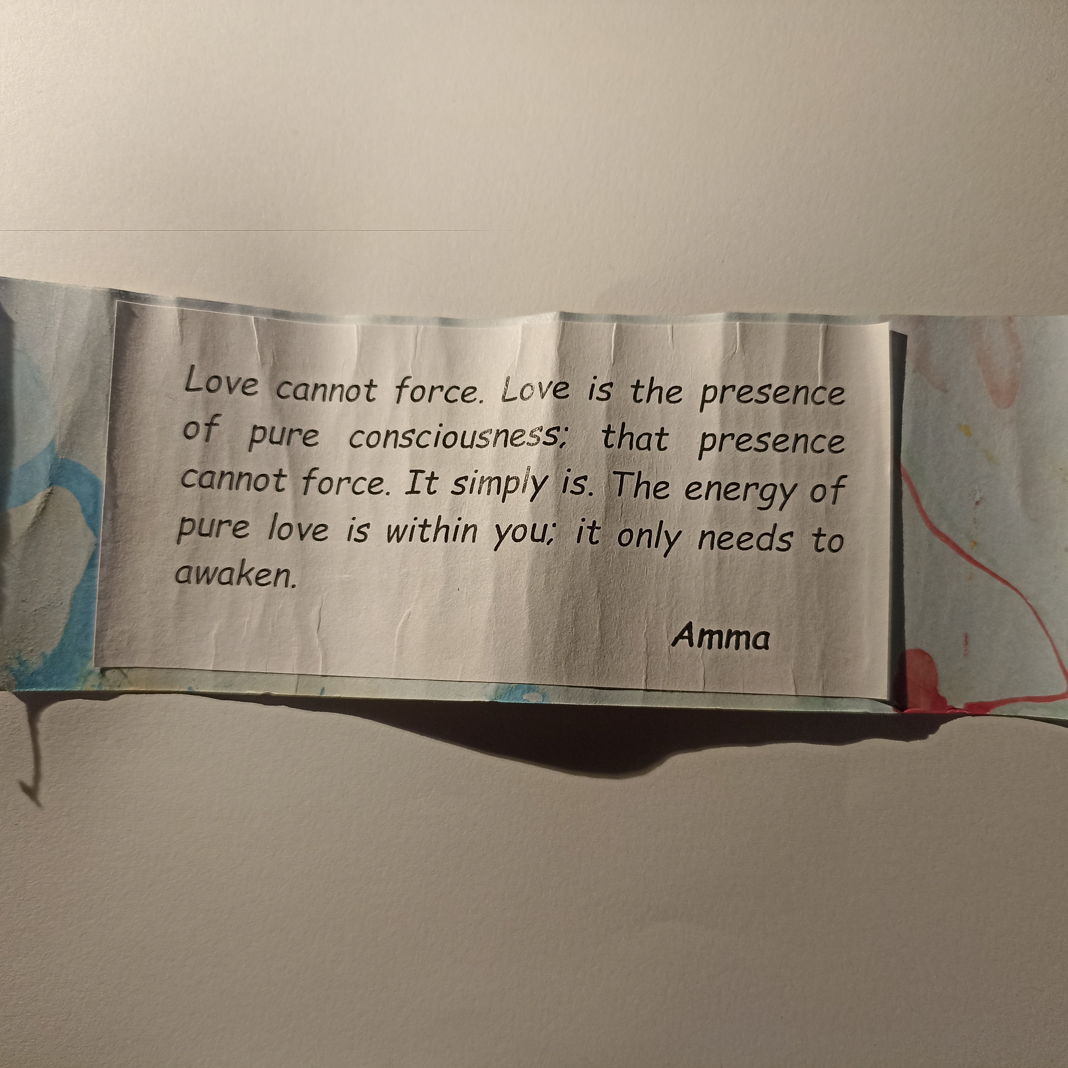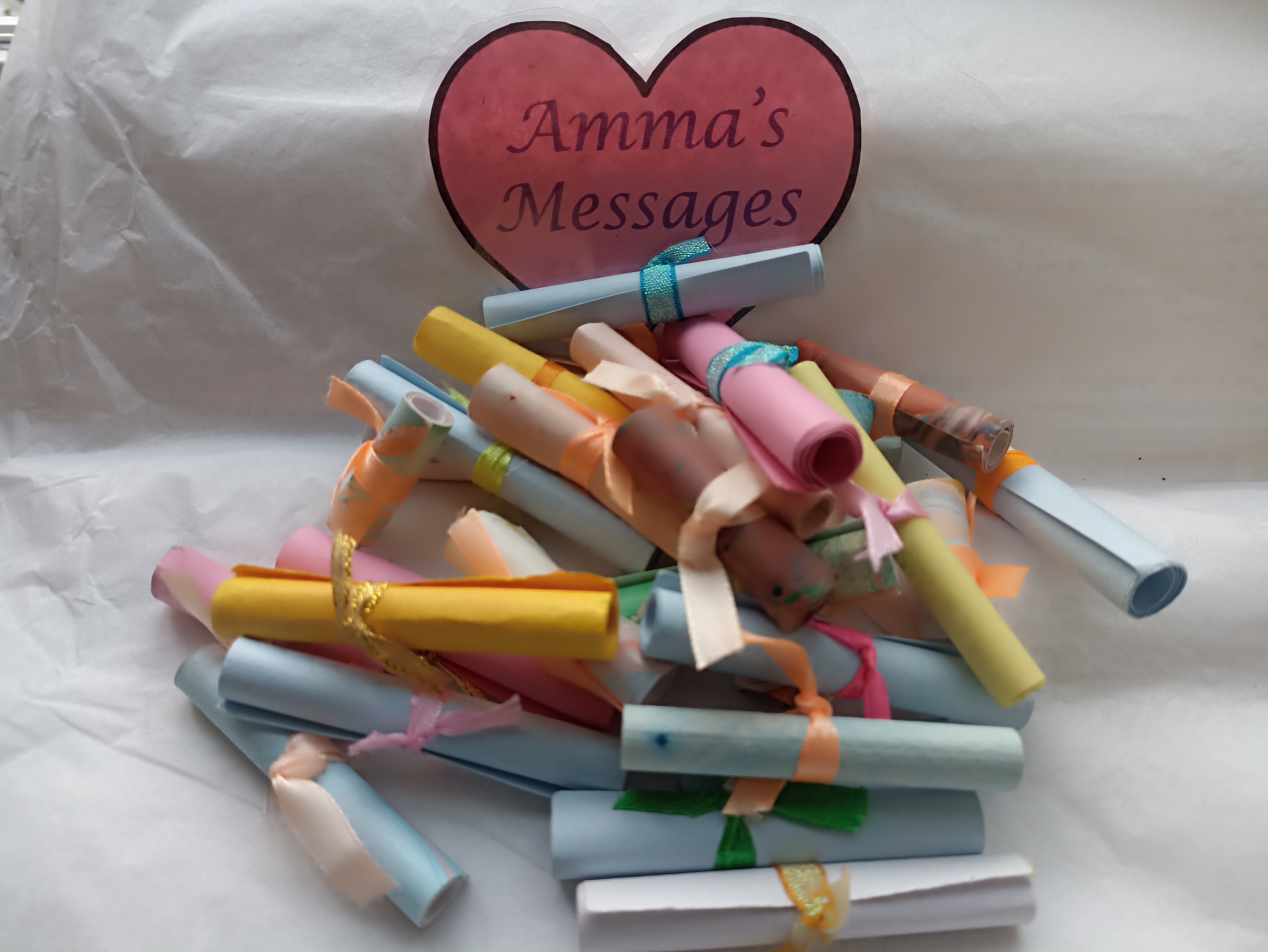 A curated collection of inspiring quotes from Amma, rolled up in Amritapuri in a elegantly crafted paper.