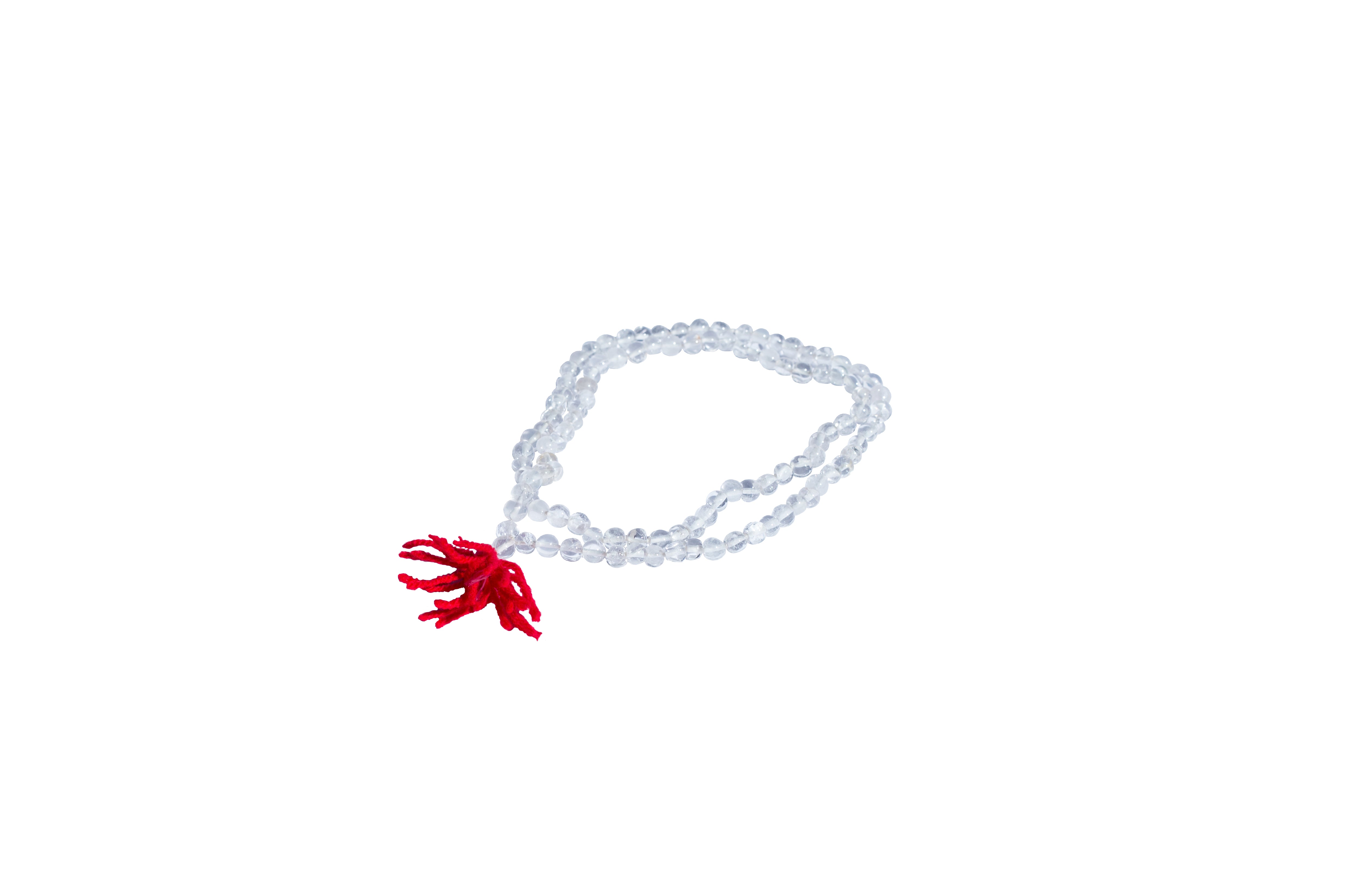 Crystal has many powerful properties, and when used in a mala, it is said to be very purifying and helpful in aiding one's intuition. It is also said to be excellent for the relief of headaches. A mala is a string of beads, used like a rosary, to facilitate concentration on a mantra. "Complete freedom from the bondage of mind and ego will create a flow of love within. People are bound by the past and the future; that is why it so difficult to find true love in the world. In order to really be able to love, both the past and the future must dissolve and disappear."--Amma