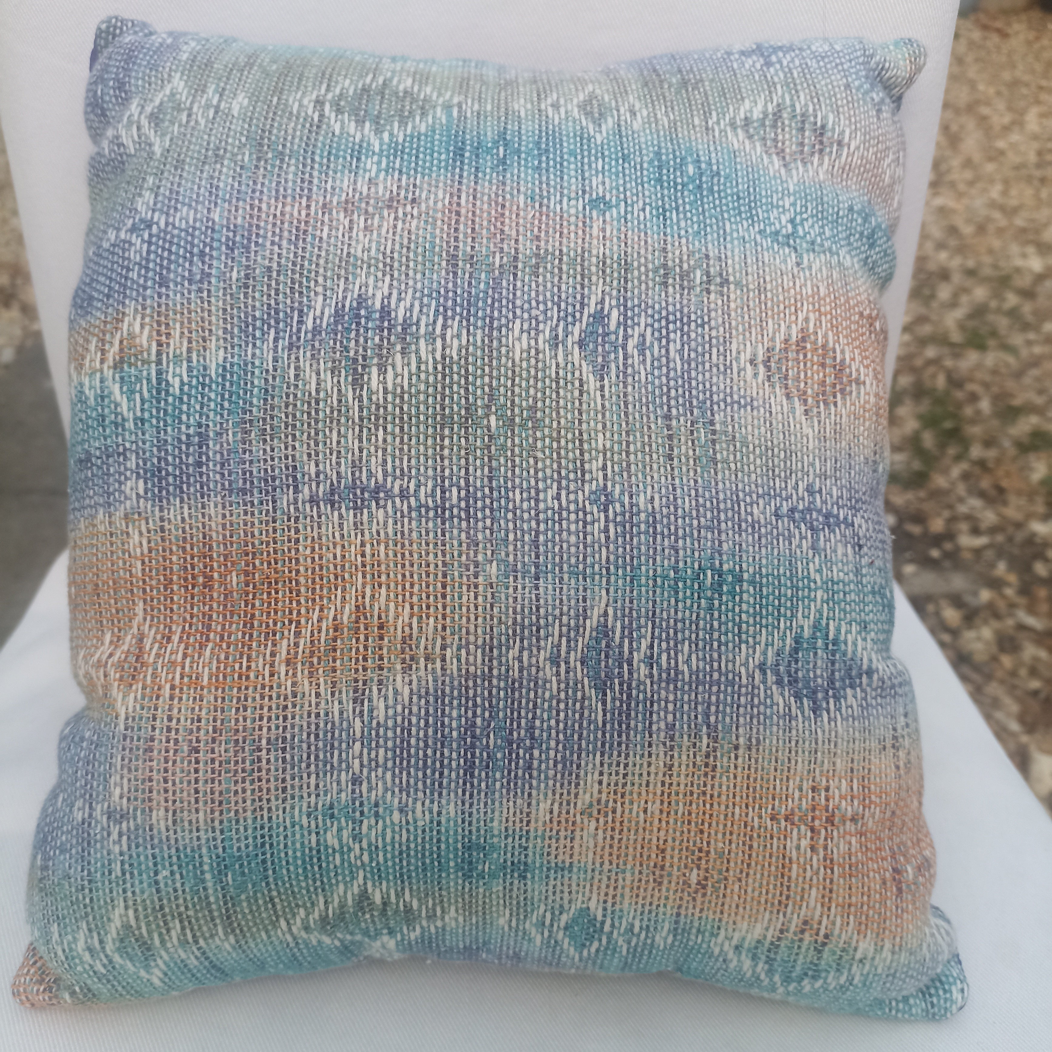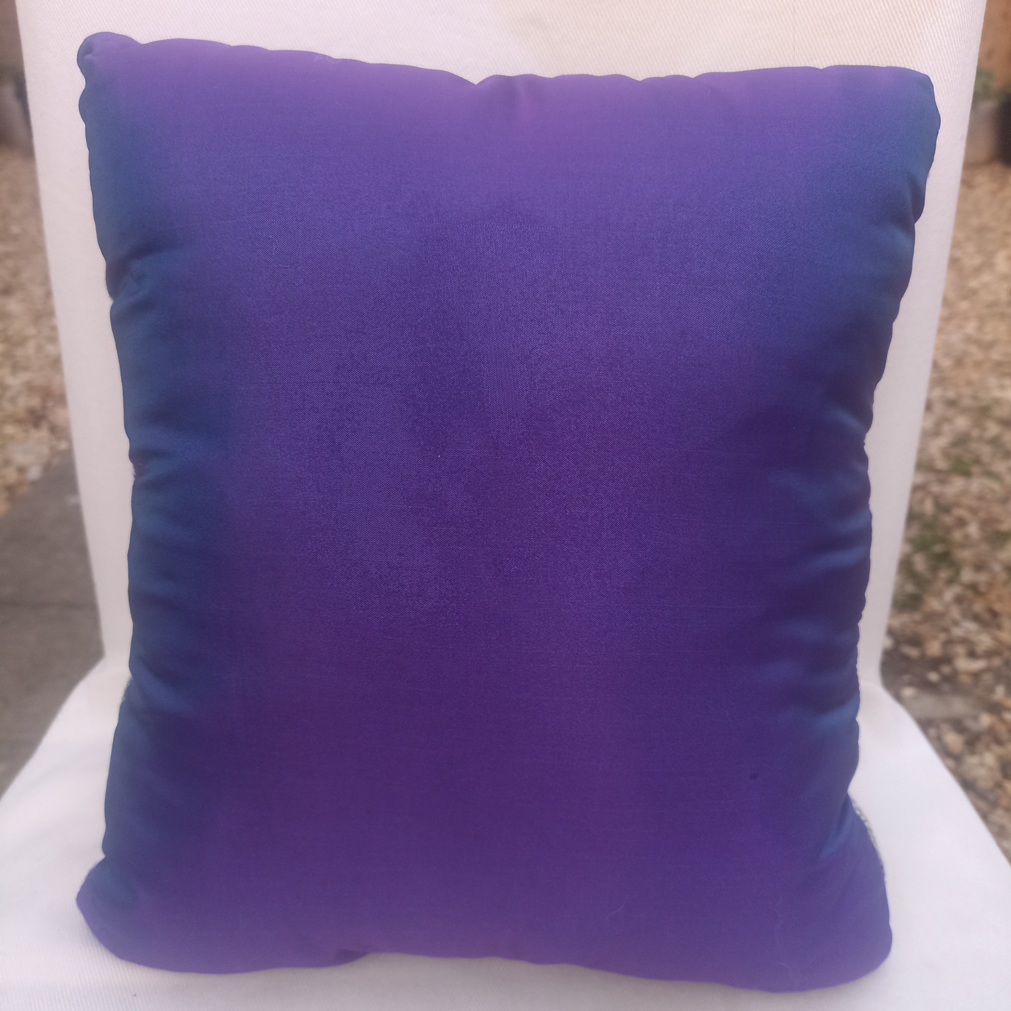This cushion is lined inside with Amma's sari and Amma's dress is the back. They are stuffed with polyfill