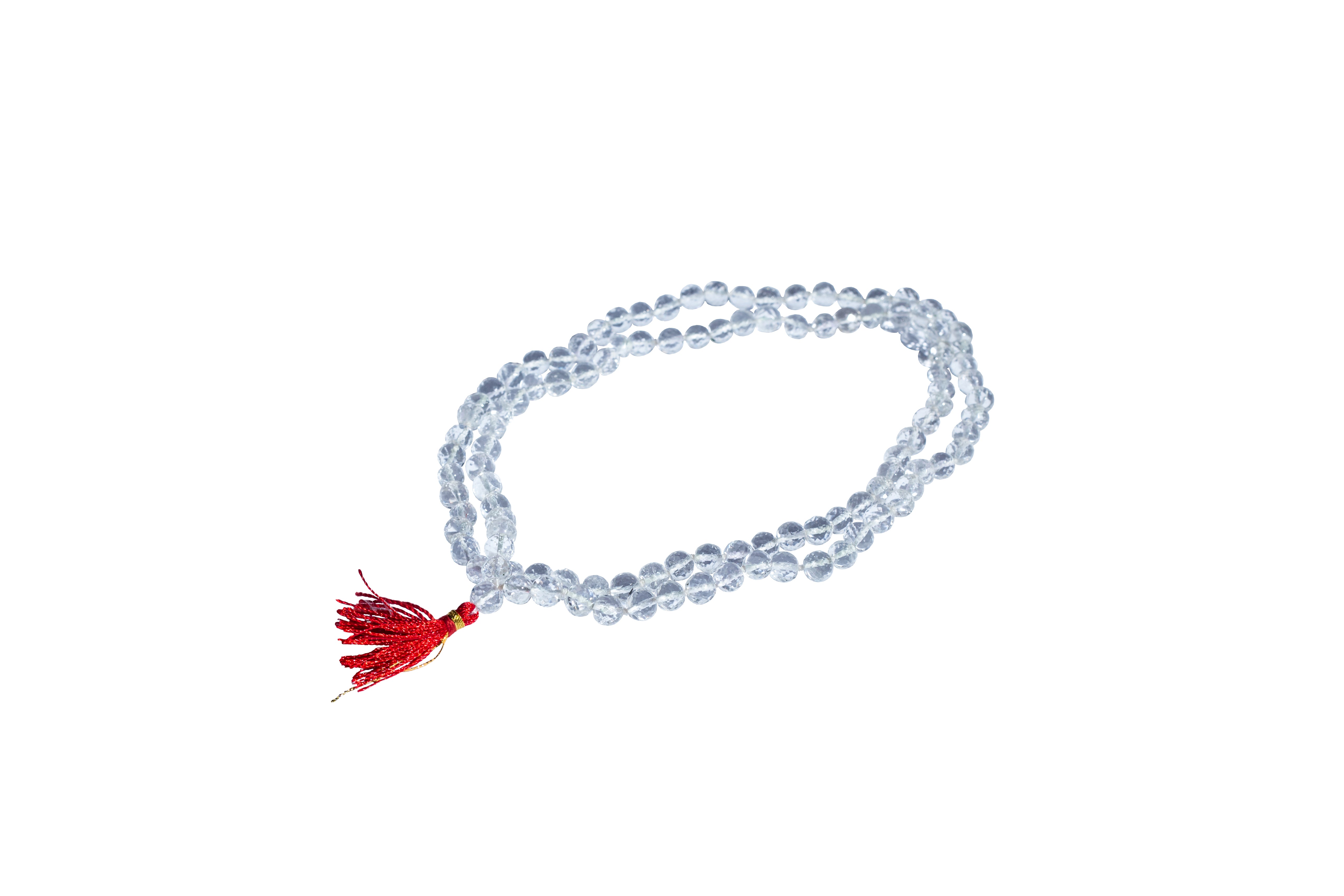 This mala is made of 108 high quality quartz crystal beads joined with a cord. A mala is a string of beads, used like a rosary, to facilitate concentration on a mantra. "Complete freedom from the bondage of mind and ego will create a flow of love within. People are bound by the past and the future; that is why it so difficult to find true love in the world. In order to really be able to love, both the past and the future must dissolve and disappear."--Amma