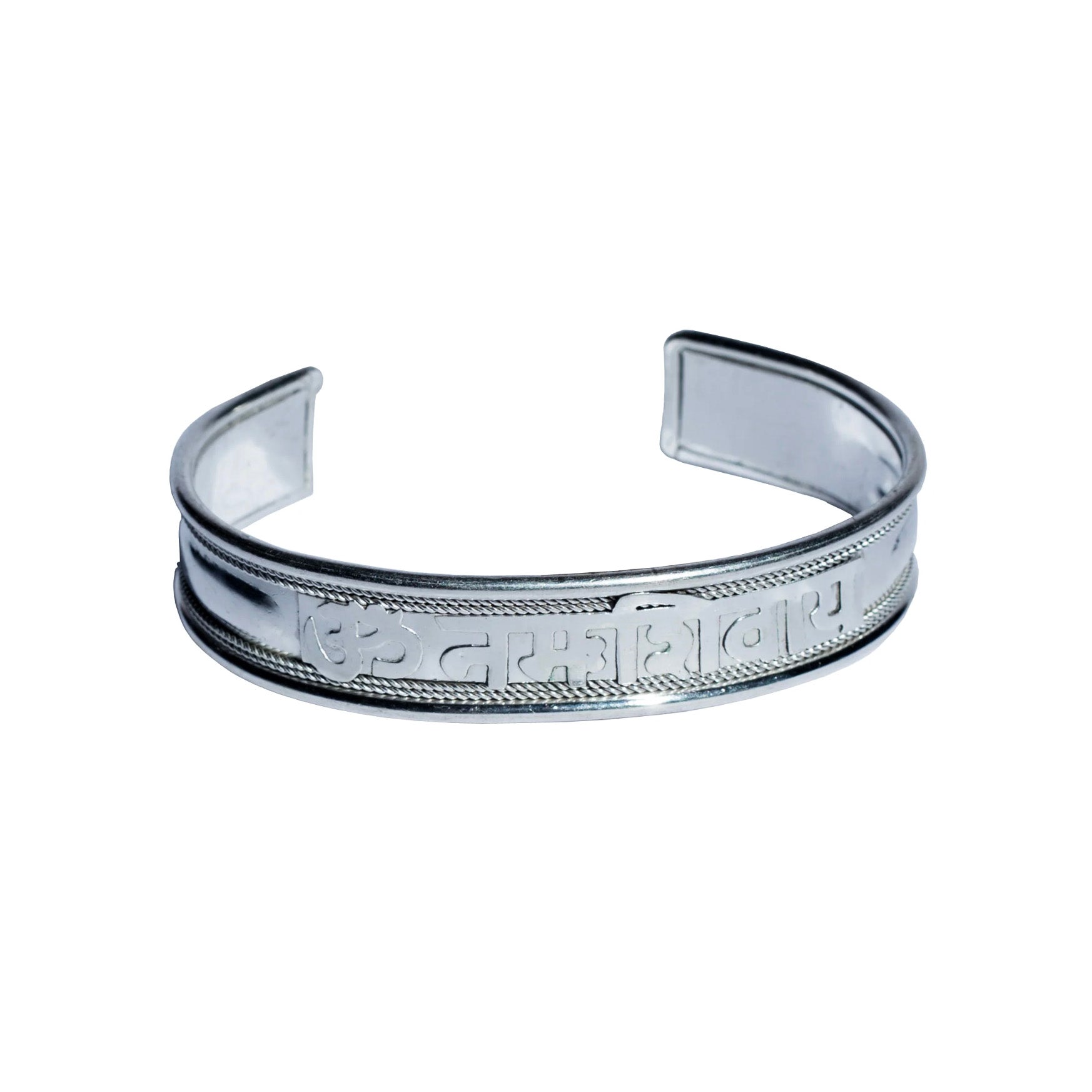 The inscription Om Namah Shivaya means "Salutations to the Auspicious One", and it is the mantra of the god Shiva. When worn against the body it is reputed to be protective and beneficial on many levels, and according to the science of Ayurveda, the silver in the bracelet purifies the body and the nervous system as well.