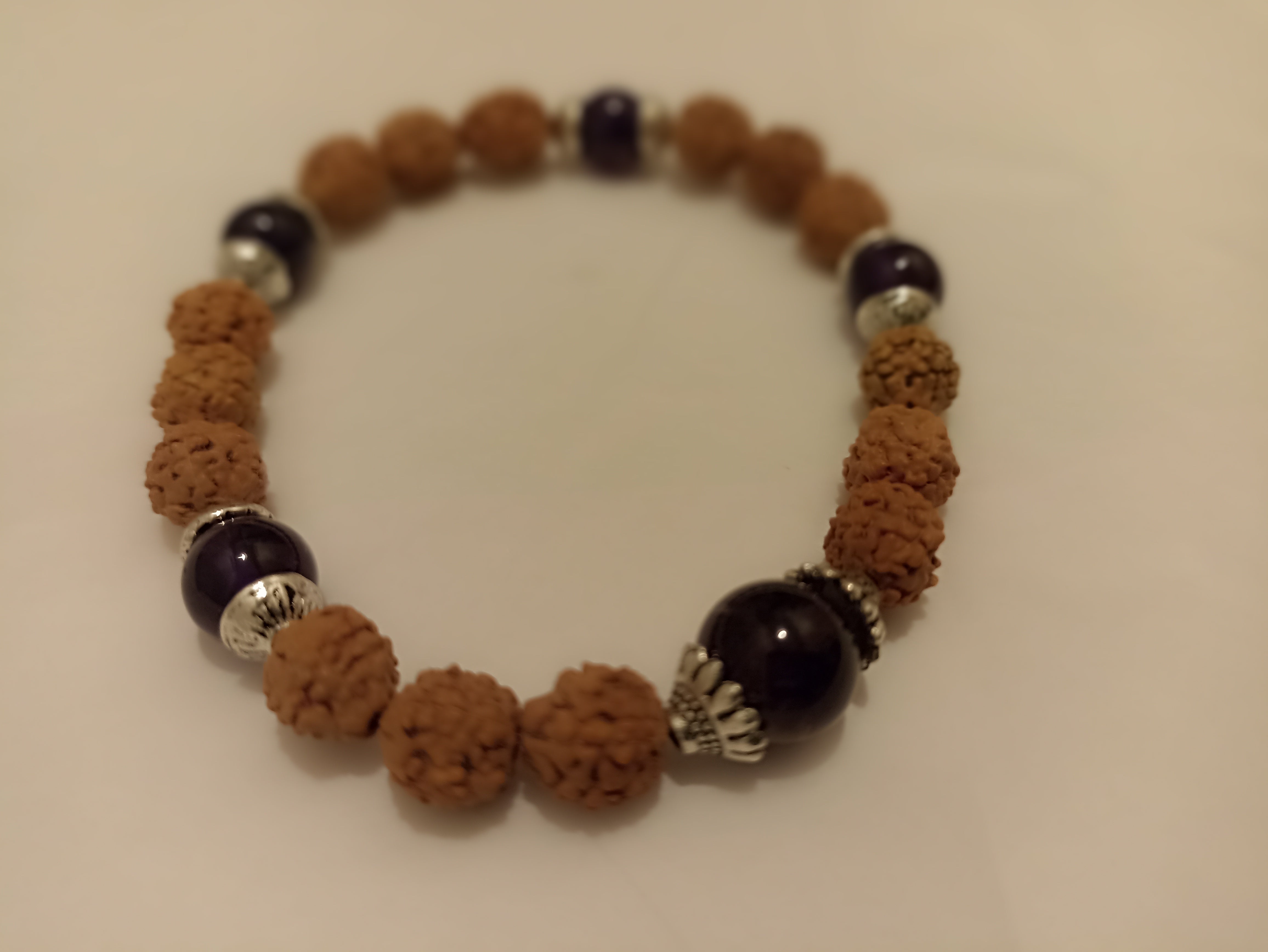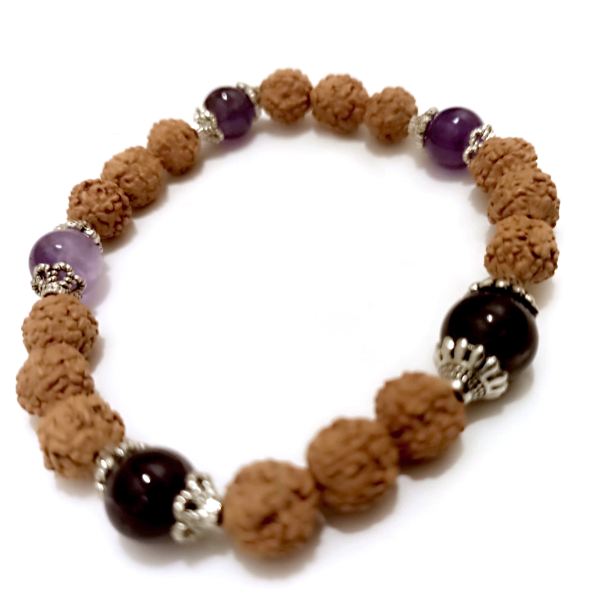Rudraksha & Amethyst Gemstone Wrist Mala