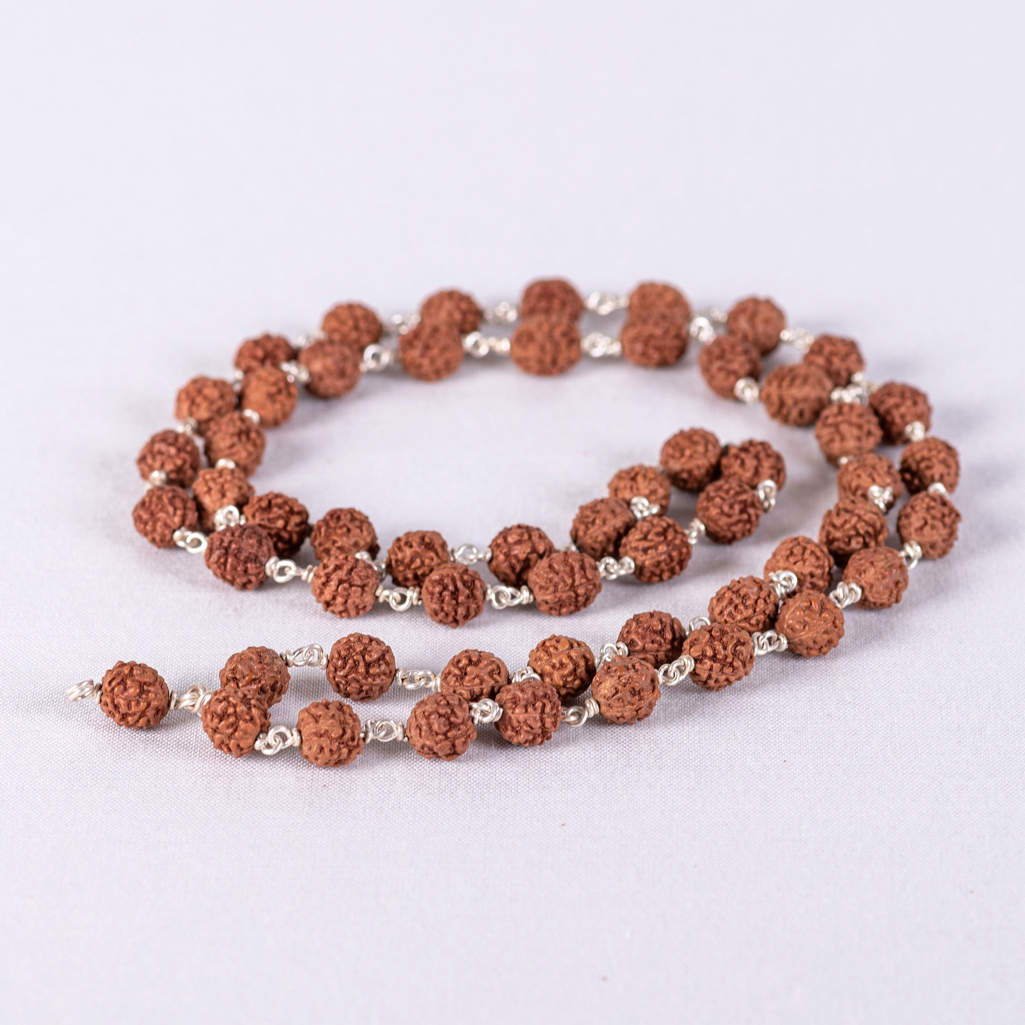 This high-quality Rudraksha mala consists of 54 Rudraksha beads joined with silver wire. Although malas are made with many sorts of materials, Rudrakshas, in particular, have many powerful properties. Famous for focusing and calming the system, they have long been used as an aid to meditation and healing in the East. In China they were long used to improve the flow of life energy or chi; in Japan they were used by Zen monks to aid in meditation, and in India they adorn many a yogi and are said to be beloved of many deities, especially Lord Shiva. Rudrakshas are said to have many health benefits, but they also greatly facilitate concentration, making them a natural choice as prayer beads. All told they are a unique and powerful spiritual tool. For those interested in the benefits of the Rudraksha, you may wish to explore our selection of large single beads which have many powerful and useful properties.
