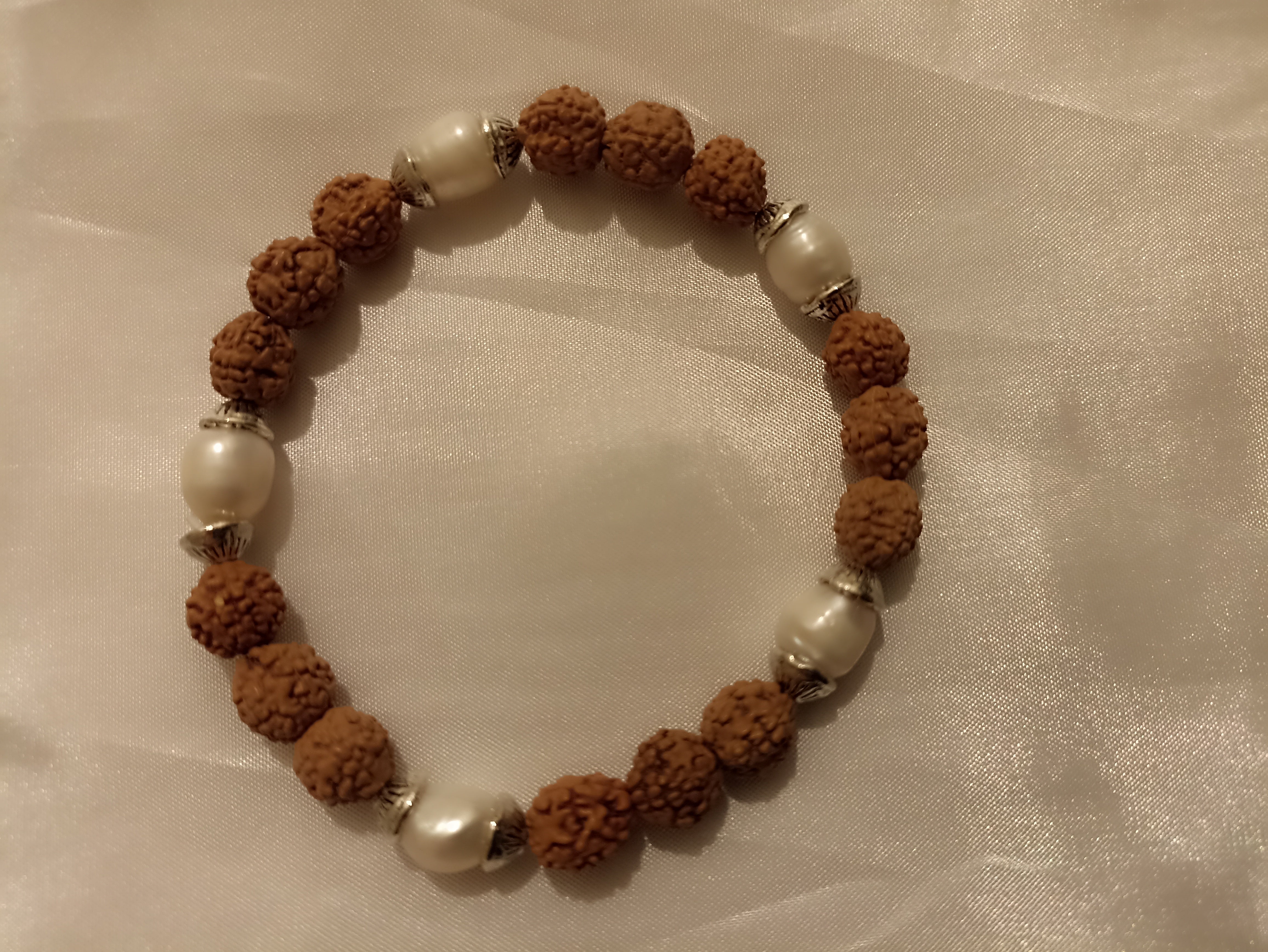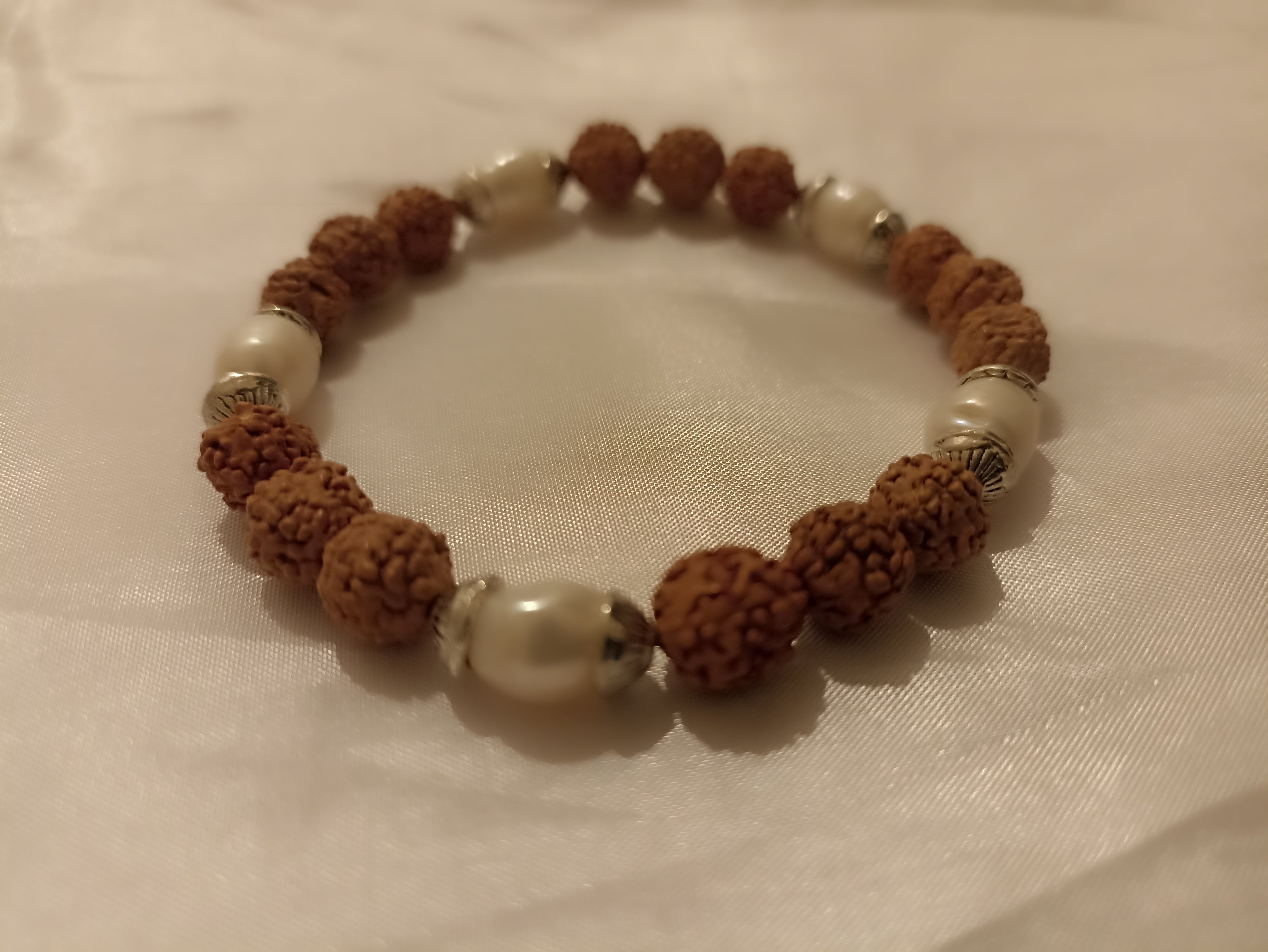 The bracelet comes with its own special healing and transformative properties through the five panchmukhi (five-faced) Rudraksha beads and pearls that represents Purity - Faith - Tranquility - Focus .