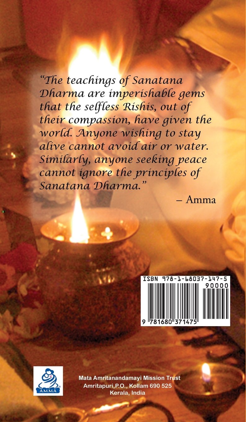 This book contains the first part of a collection of Amma's answers to the questions on the principles of Sanatana Dharma, which embodies eternal truths that everyone, irrespective of religion, caste, or culture, can imbibe and adopt in life. These questions were raised by devotees on different occasions.
